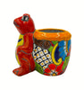 Mexican Talavera Standing Frog with Basket Planter Pot Hand Painted - Yellow Frog