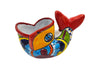 Mexican Talavera Bonsai Fish Planter Pot Hand Painted - Traditional Pescado Bonsai Maceta - Dark Blue Trim