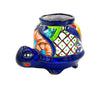 Mexican Talavera Corona Turtle Planter Pot Hand Painted - Light Blue & Metallic Green Body