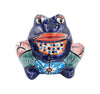 Mexican Talavera Corona Turtle Planter Pot Hand Painted - Dark Blue Body